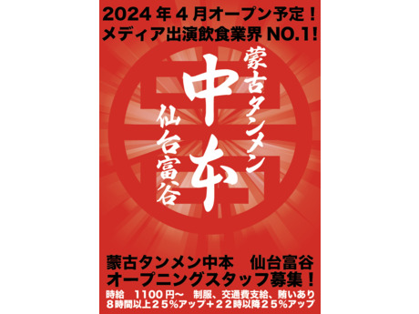 店長の長沢です。この度、縁があって宮城県富谷市に店舗をオープンすることとなりました。蒙古タンメン中本の東北初となる出店で私自身も緊張すると同時にエネルギーが湧き出るような気持ちです。日本一の辛うまラーメンを東北地方のお客様に召し上がっていただけるのは大きなやり甲斐と責任を感じます。元気いっぱいの蒙古タンメン中本でお客様に美味しく、気持ち良く召し上がっていただける店舗作りのお手伝いをしていただける皆さんの応募をお待ちしております。